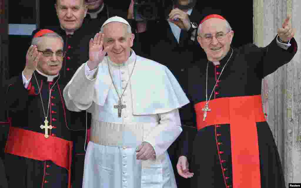 Kadinal yo nan Vatican seleksyonen yon nouvo Pap pou ranplase Pap Benoît 16 ki demisyonnen 28 fevriye pase a. Kadinal Jean-Louis Tauran parèt sou balkon Bazilik Sen-Pyè a e li deklare :"Habemus Papam" ki vle di : Nou gen yon Pap".